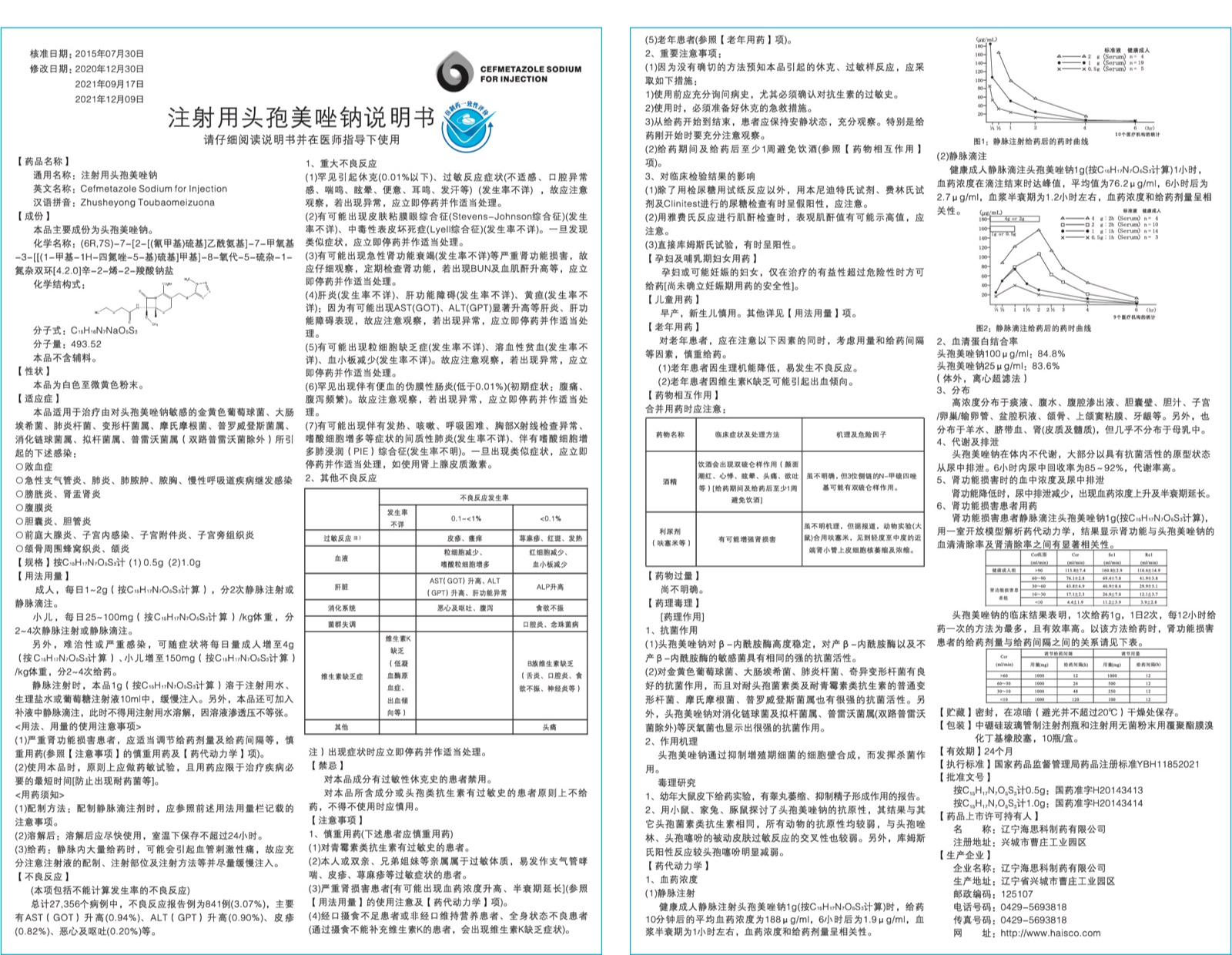 【藥品規(guī)格】 按C18H23N9O4S3計算(1)0.5g(2)1.0g(3)2.0g
